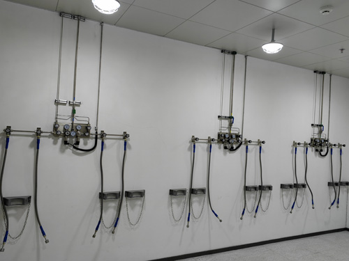 1.氣瓶間內水壓上下調整顯示屏與科學試驗廠區室內的氣路用戶中使用SS316LBA管展開連入,管網內界面滑膩度為Ra<0.4umBA級管網。
